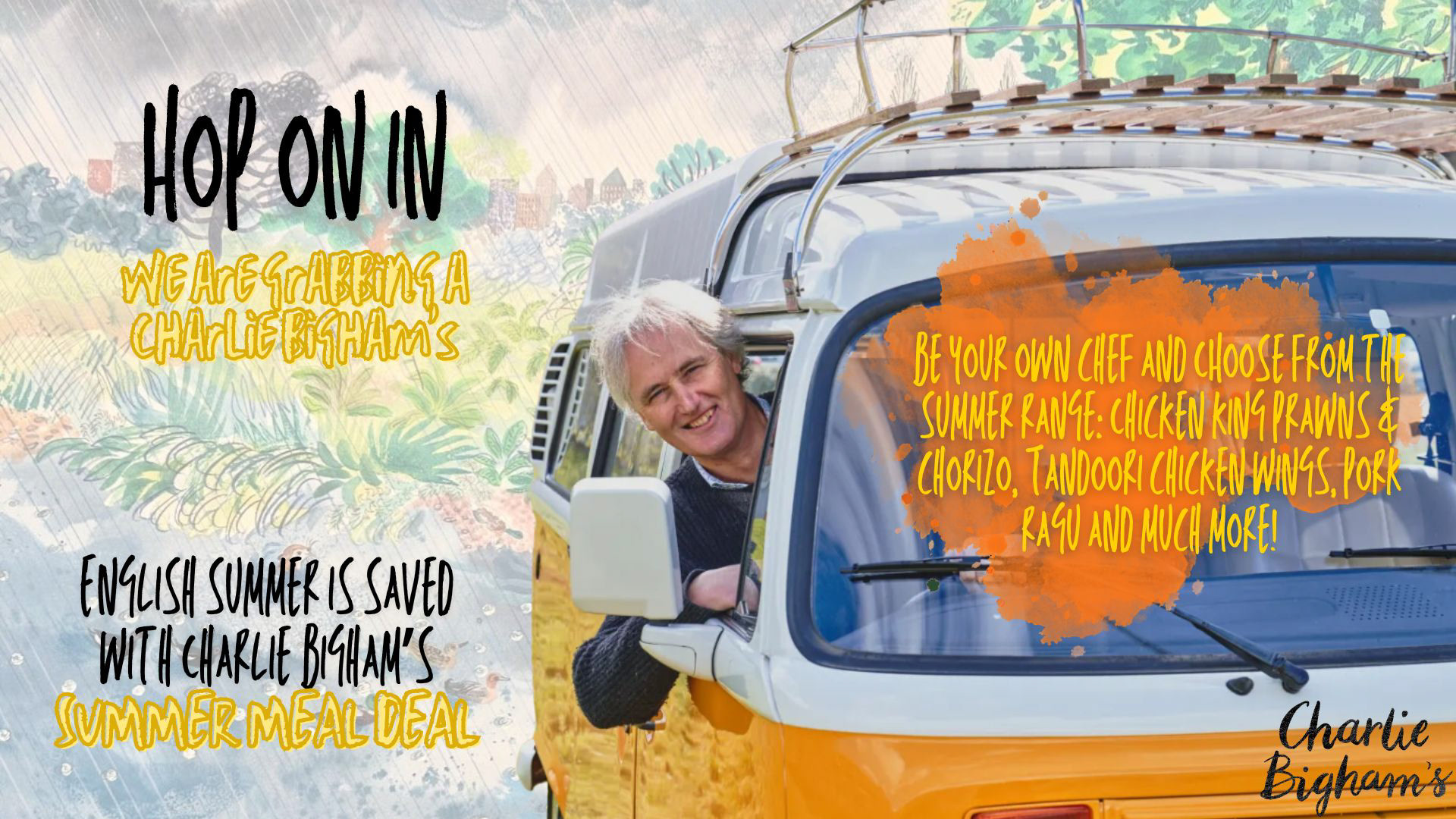Our group decided to create the idea of a 'Summer meal deal'. This way, you would get a bargain for your money as well as being able to try out the Summer range! We also wanted to combine the illustration aspects of the brand and combine it with Charlie himself - this way we would be communicating that he is a real person.