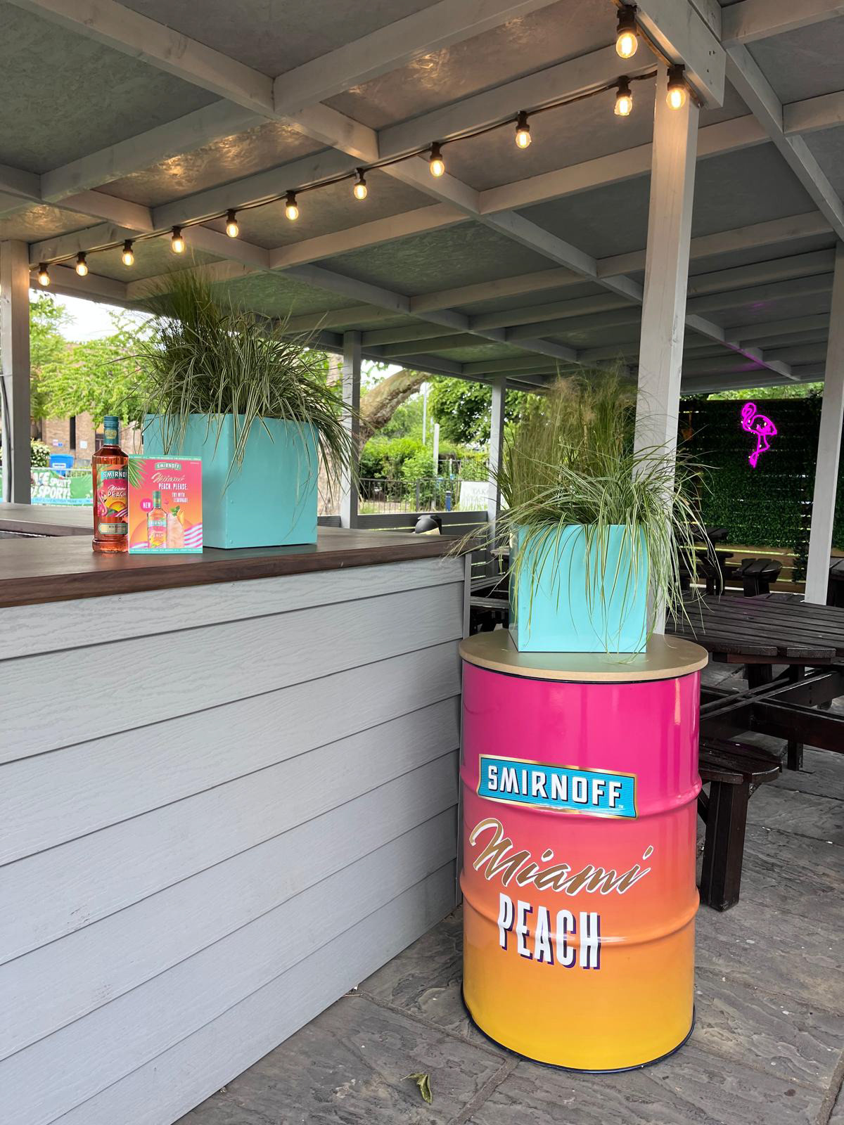 Since starting my junior designer role, I have been involved in the design work for various terraces. This one in particular focuses closely on Smirnoff's glorious Miami Peach! Below are images of the installs done by the team which brought the vision to life!